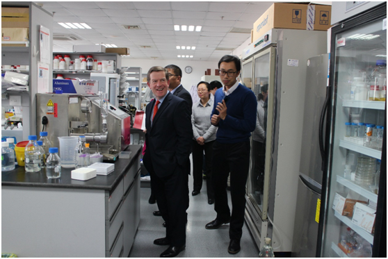 2015年12月3日,GE Healthcare Life Sciences全球总裁Kieran Murphy一行访问了91直播下载-91直播网 ,在我所结构生物化学实验室Co-PI聂焱、姜标实验室研究副教授刘佳以及Ian Wilson实验室研究副教授杨贝的陪同下参观了91直播下载 及各个实验室,并由聂焱介绍了SIAIS的整体概况、师资队伍及各个实验室研究领域的概况。随后,GE Healthcare Life Sciences一行三人来到iHuman91直播下载 ,由副所长刘志杰代表91直播下载 介绍了所里的概况并表示热烈欢迎。