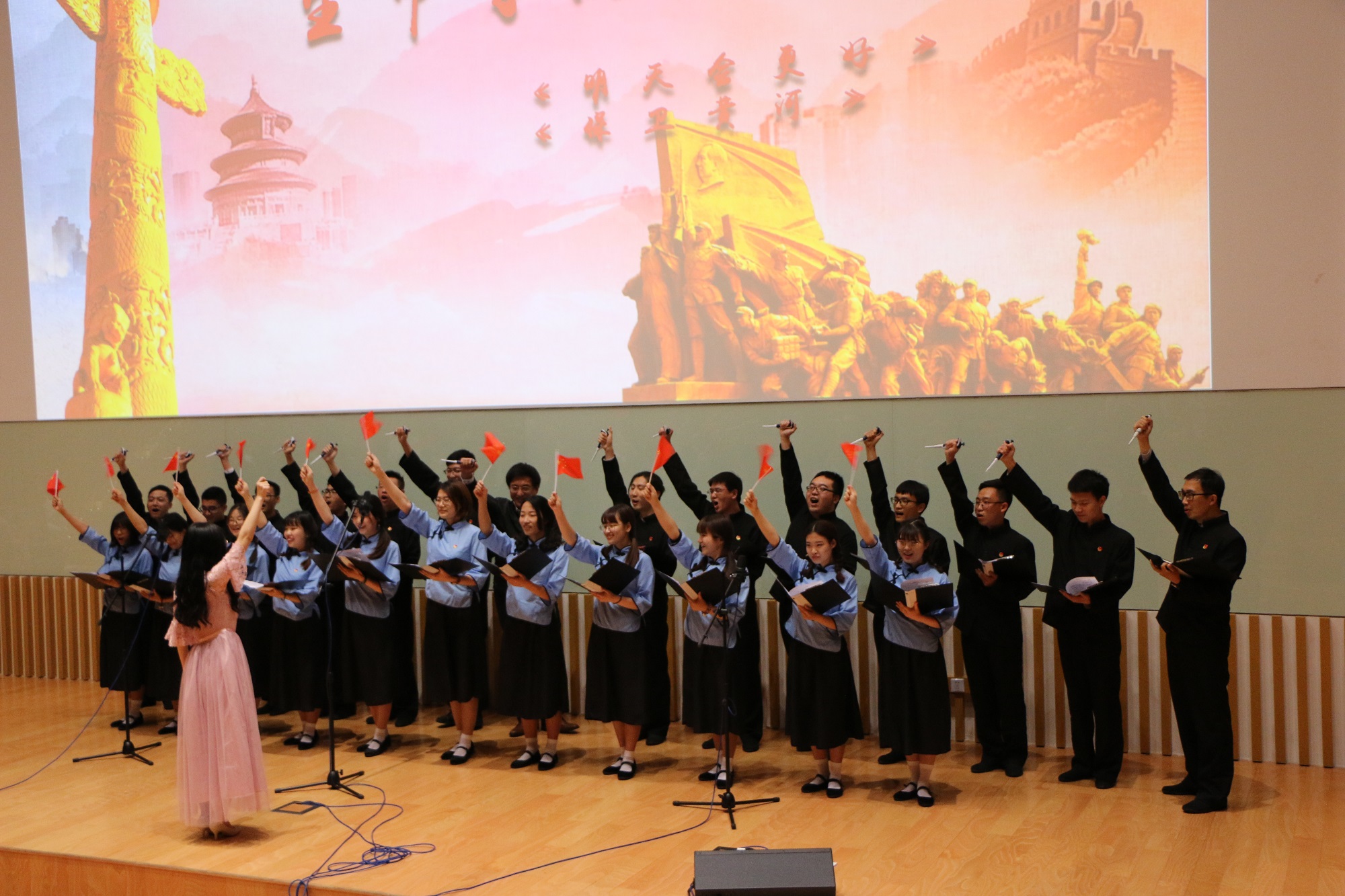 歌会当晚,在两位老师和指挥的带领下,同学们整齐划一,身着符合所选曲目时代特色的五四学生装登上舞台,现场气氛仿佛瞬间被拉回到那个群情激昂保卫祖国的火热年代。伴随着“端起了土枪洋枪”的歌声,男同学们举起具有生命科学特色的移液枪;应和着“挥舞着大刀长矛”的曲调,女同学们挥舞起了鲜艳的五星红旗。师生们的演唱节奏整齐、配合默契:《明天会更好》旋律饱满、情真意切;《保卫黄河》激扬澎湃、铿锵有力,获得了台下评委和观众的一致好评,也为我校首届“立志杯”五四歌会的舞台添上了绚丽耀眼的一笔。