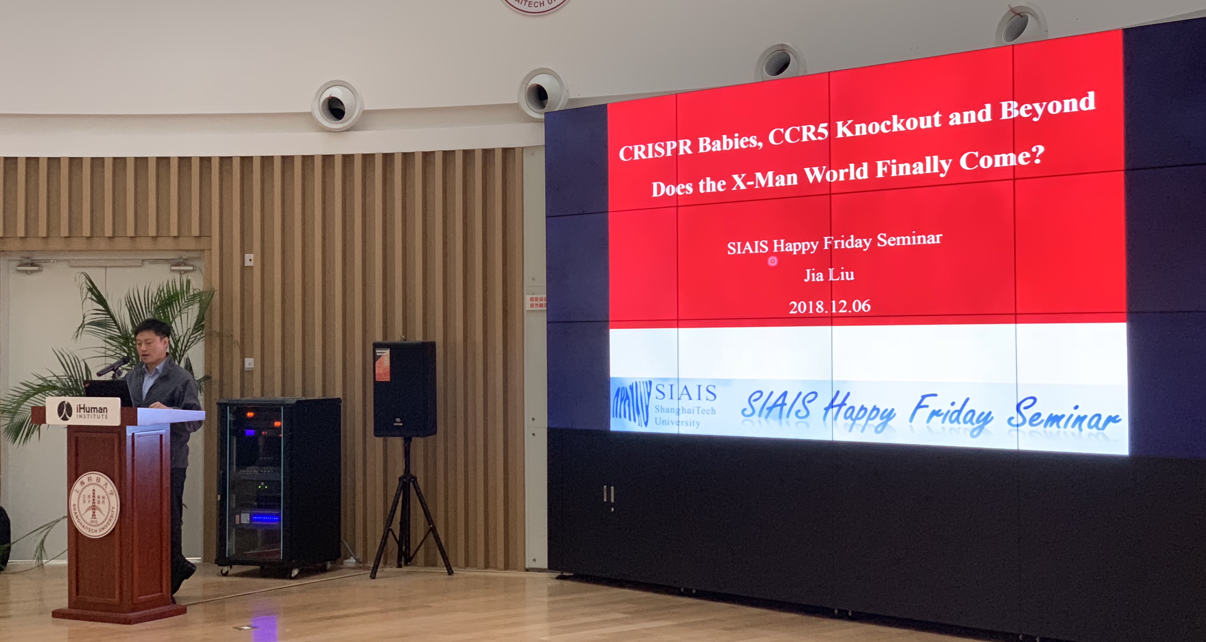 12月7日周五,我所刘佳博士在SIAIS Happy FridaySeminar上进行了题为“CRISPR Babies, CCR5 Knockout and Beyond-Does the X-Man World FinallyCome?”的报告,和大家分享了其在HIV基因治疗方面的研究成果,并就最近“贺建奎 基因编辑婴儿”事件和大家展开讨论。
