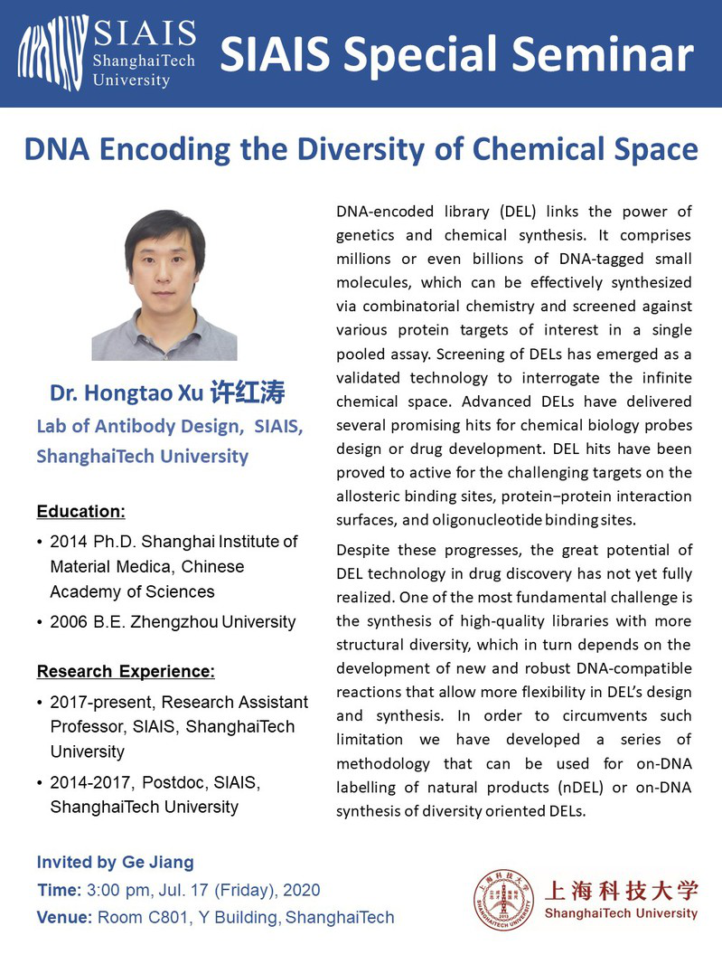 SIAIS Special Seminar | DNA Encoding the Diversity of Chemical Space