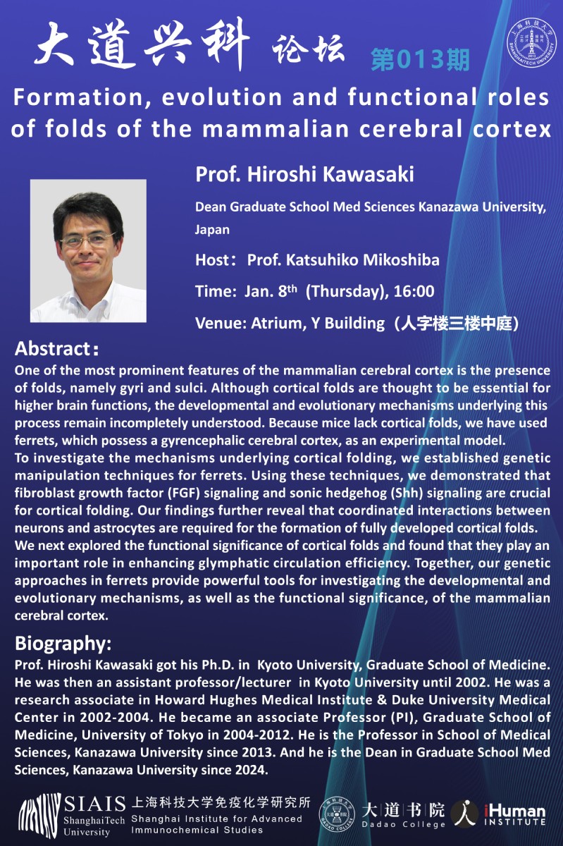 报告题目:Formation, evolution and functional roles of folds of the mammalian cerebral cortex